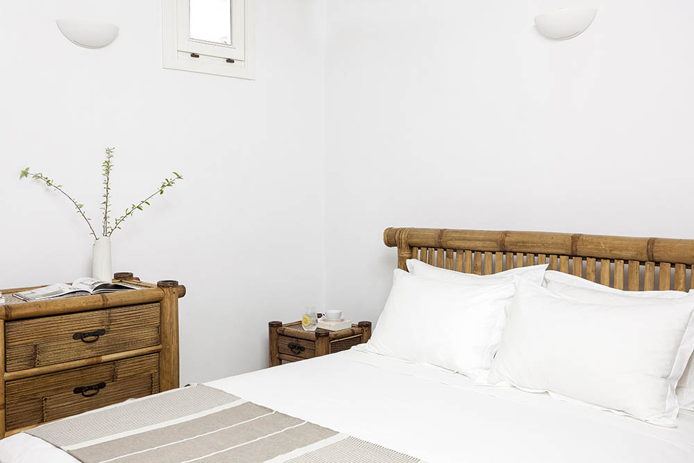 Villa Armonia has a single main entrance, totally 4 bedrooms and 4 bathrooms. The brilliant white interiors and exteriors and the subtle tasteful decorations reflect the Mykonian-elegance the island is known for, so you can totally immerse yourself in the spirit of the island. The refurbished luxury estate has daily, complimentary maid service so you don’t lift a finger, 24/7 monitored grounds at the periphery of the estate, so unauthorized people are detectable, Netflix to quench your thirst for relaxed adventure, flat screen TVs so everyone can watch, back-up generators to face the frequent local electric shortages, a private water desalination system so you can ignore the frequent local water shortages, and a 24/7 gate-access control.