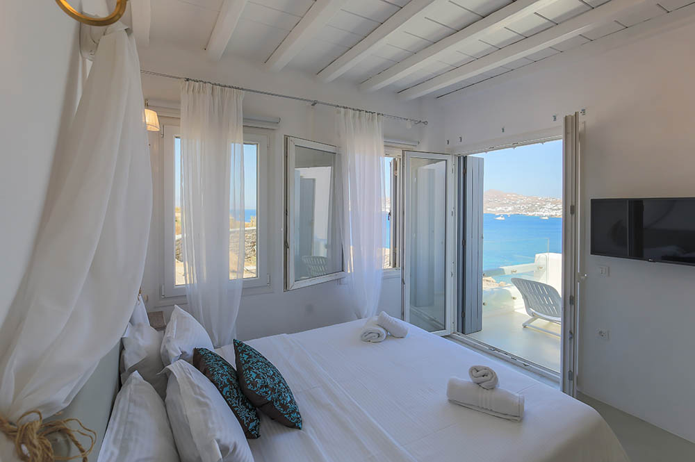 Villa Ava built In 2017,the 170 square meters, two-level property, all in white, is perched on a hillside with breath-taking, panoramic views over the Aegean Sea boasting a large open plan living area indoors and outdoors and offering privacy and seclusion in a very idyllic spot. In combination with the 5* Hotel Standards Amenities promises incomparable hospitality.