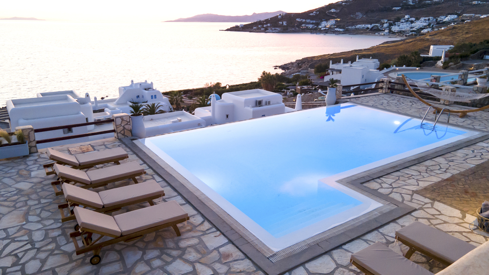 magnificent views, overlooking the Aegean Sea while facing the island of Delos and its