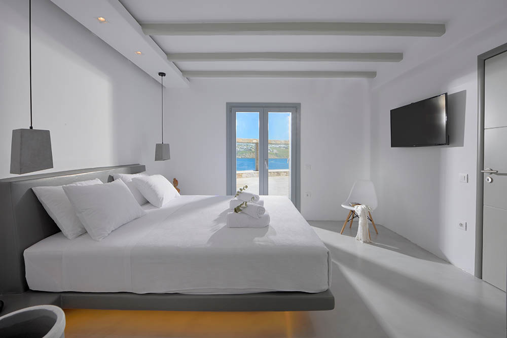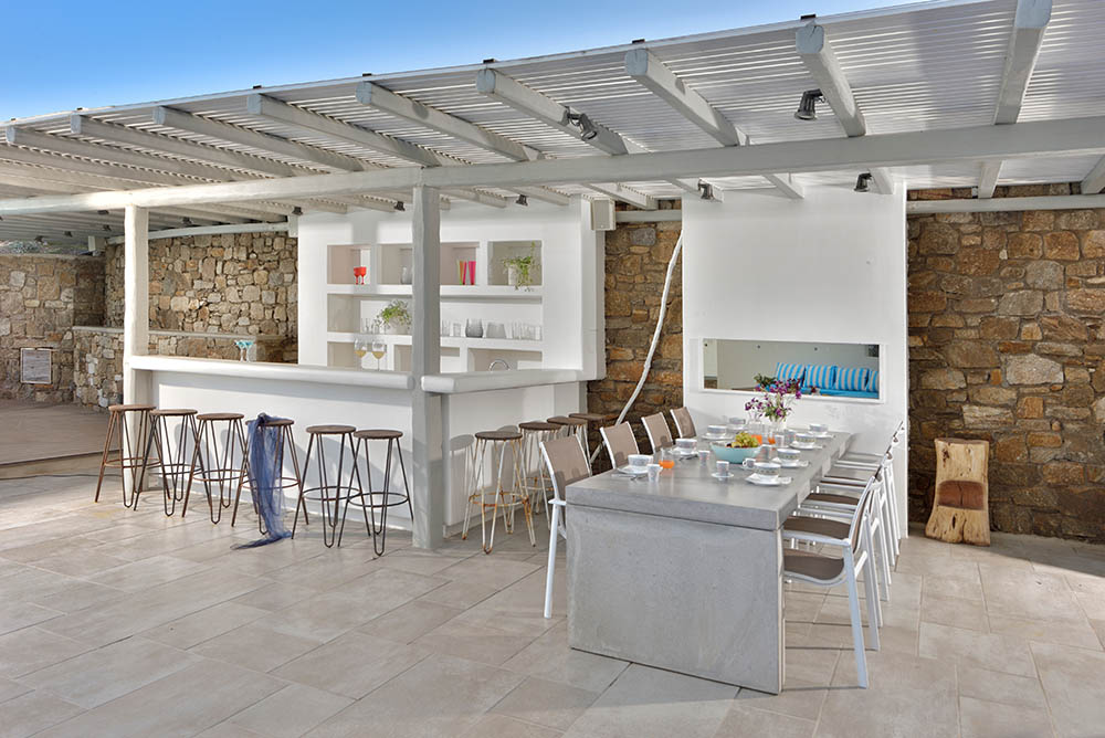 Villa Celina is situated on a sublime location with an excellent Kanalia & Corfos view on Mykonos. The heated infinity pool offers you a beautiful view on the windmills of Mykonos, enriched with sun beds and a lounge area with bar. Cristal window at terrace against Mykonian Meltemi for people who want to enjoy the sun for 100 %.