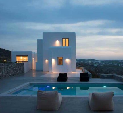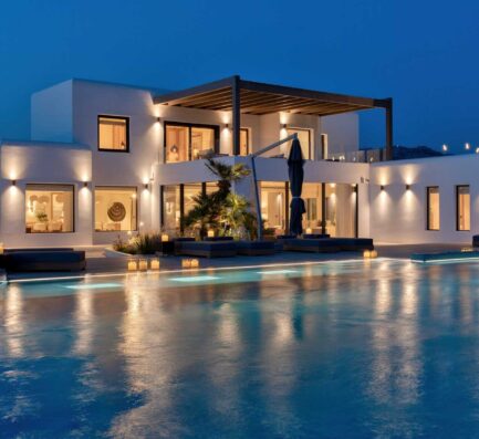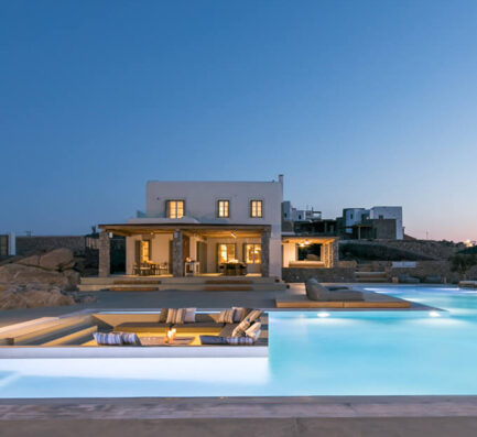 Villa Cosmo Ciel is a large maisonette consisting of 4 bedrooms (3 master bedrooms and 1 with 2 single beds), 4 bathrooms and one WC, which can accommodate up to 8 guests. On its sumptuous veranda, there is a private Jacuzzi. Its guests enjoy full access to the central swimming pool of the complex and have a parking space reserved for them.