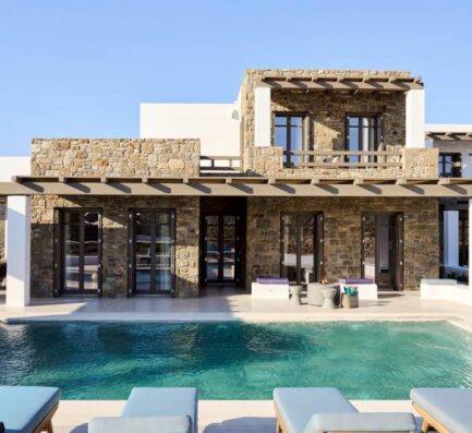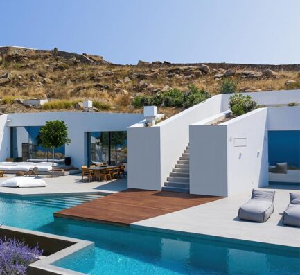 A truly magical, old-school Mykonos villa dramatically set on a cliff overlooking Ornos. Enjoy its panoramic views of Baos island and Mykonos Town.