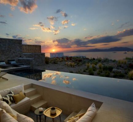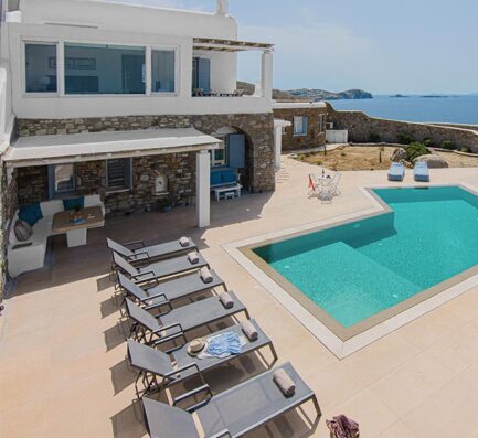 Allowing to enjoy the serene isolation that Villa Emerald offer while benefiting from the easy access, this area is one of the last ones on the island that are very quiet and tranquil and offer privacy and peace of mind while being still close to all the cosmopolitan spots that the island is very famous for. A 5min drive will get you in the middle of everything in the famous socialite and vibrant life in the old town of Mykonos, a 7 min drive to the famous beach of Psarrou and a 1 minutes drive to Ornos beach.