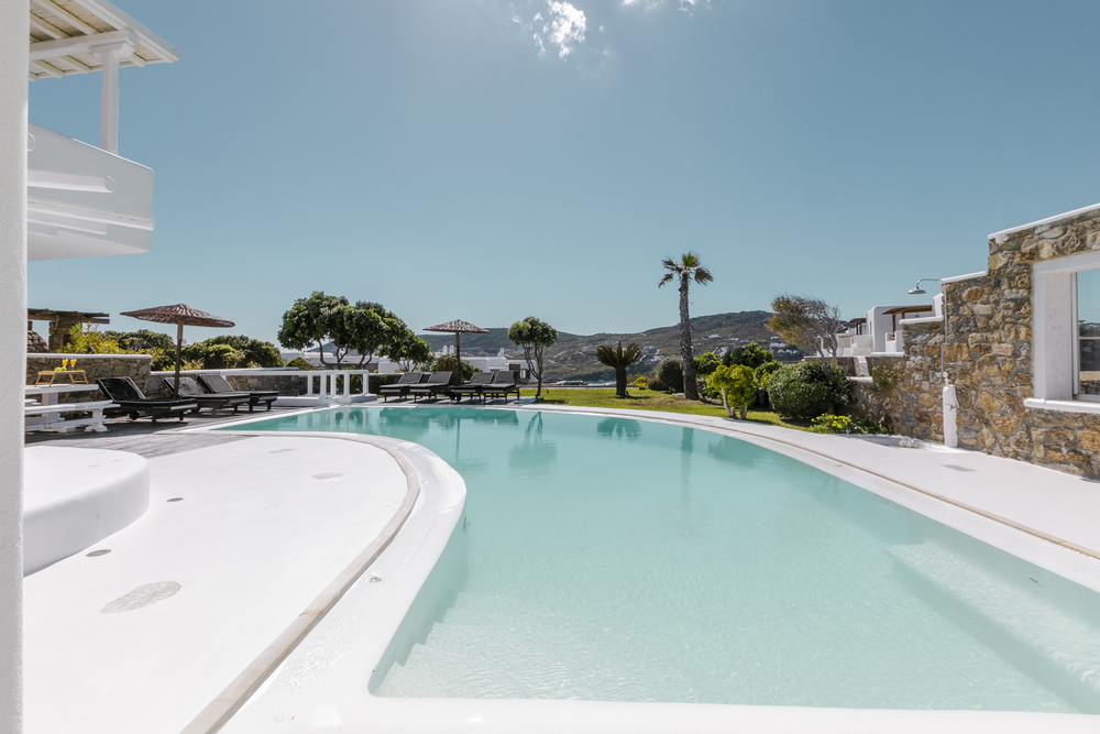 Villa Grace offers accommodation in Kalo Livadi in Mykonos with outdoor swimming pool,  bar,  garden, free WiFi and pool view.