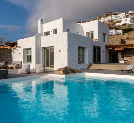 An exclusive five-bedroom Villa that exemplifies the true spirit of Mykonos summer living where you can enjoy a wine-red evening over Ornos Beach while offering poolside libations to the local goddess Artemis.