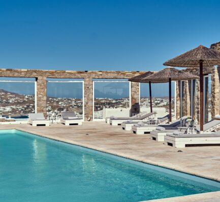 A modern minimal Villa consisting of two separate ground floor apartments that gives you the privacy and freedom to live the Mykonian dream.