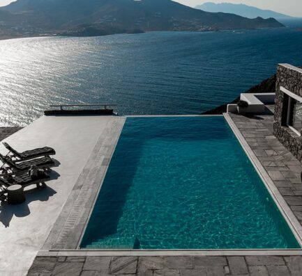 The luxurious 5-bedroom villa, situated in the south of the Island ,in the area of Aleomandra, 80 meters from the sea front with magnificent views ,overlooking the Aegean in the direction of Naxos island, well protected by the strong northern winds.