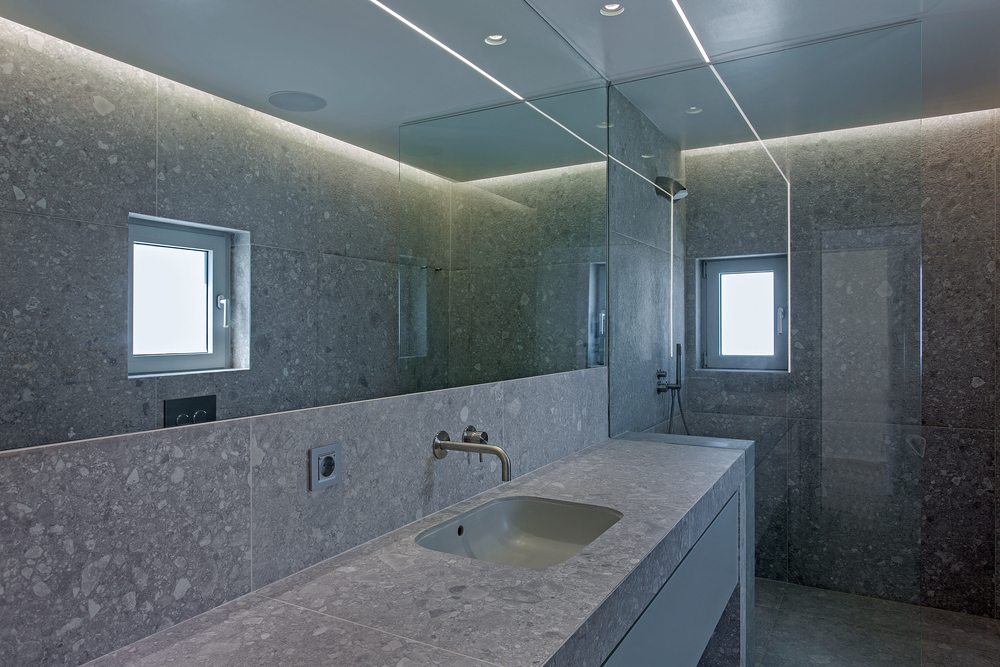 The exterior area is absolutely plain and simple with outside stairs connecting the upper floor with the pool- garden area, creating the needed independency for the guests.The guests can relax next to the 35m bio-pool and enjoy the quietness and the elegance of the place.