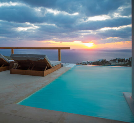 The villa is surrounded by rocky hills and the rich Mediterranean herbs, embracing the true spirit of the summer life. An elegant infinity pool accompanied by very spacious terraces with comfortable summer furniture, allows guests to enjoy the Greek sun while pergolas provide refreshing shade.