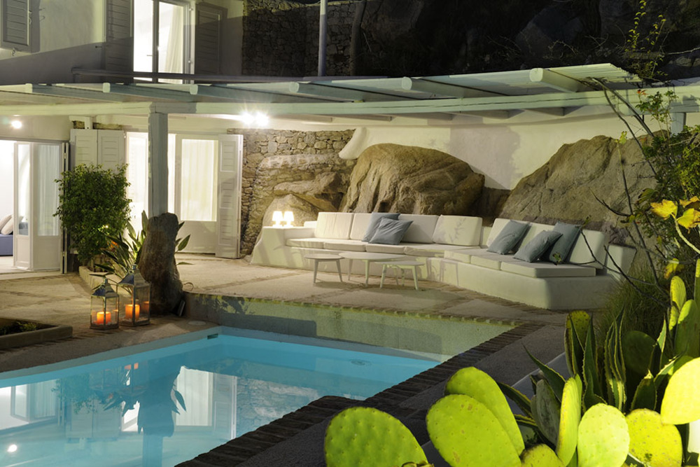 The luxurious 4-bedroom villa is situated in the south of the Island, in the area of Aleomandra, 80 meters from the sea front with magnificent views, overlooking the Aegean in the direction of Naxos island, well protected by the strong northern winds. The villa is modernly furnished and has a big swimming pool.