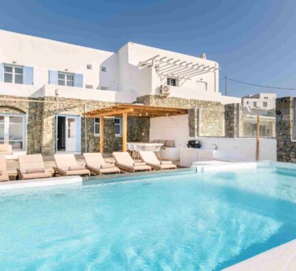 Villa Utopia 3 is just 6 km away from the cosmopolitan Mykonos Town. 2-minute drive to the famous Alemagou beach bar. In addition to that and for those who prefer to walk, in just 3 minutes you can reach Ftelia beach.
